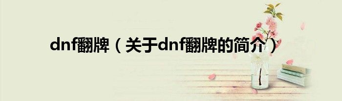 大家好,dnf翻牌,關于dnf翻牌的簡介很多人還不知道,現在讓我們一起來看看吧!