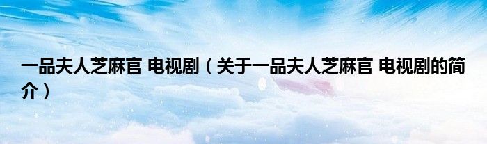 本文關于一品夫人芝麻官 電視劇的簡介就講解完畢,希望對大家有所幫助。