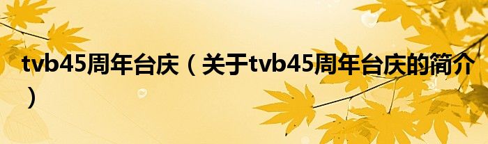 本文關于tvb45周年臺慶的簡介就講解完畢,希望對大家有所幫助。