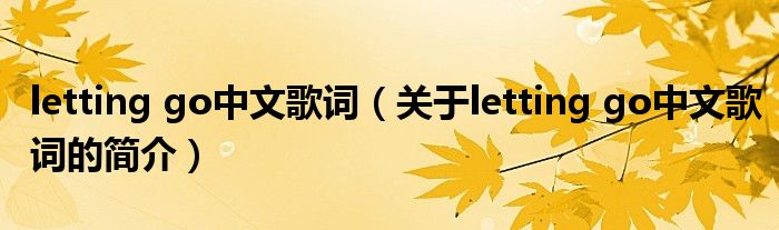 本文關于letting go中文歌詞的簡介就講解完畢,希望對大家有所幫助。