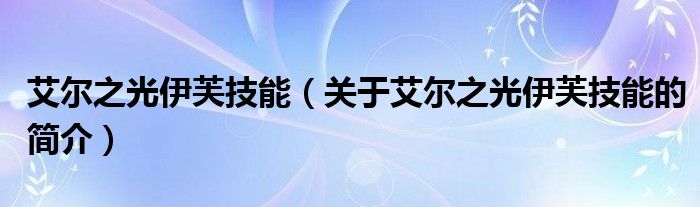 本文關于艾爾之光伊芙技能的簡介就講解完畢,希望對大家有所幫助。