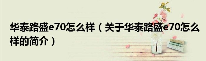 本文關于華泰路盛e70怎么樣的簡介就講解完畢,希望對大家有所幫助。
