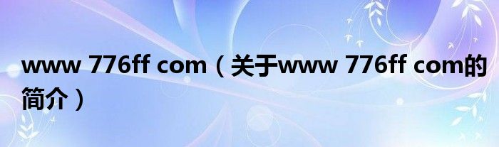 大家好,www 776ff com,關(guān)于www 776ff com的簡介很多人還不知道,現(xiàn)在讓我們一起來看看吧!