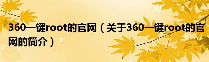 本文關于360一鍵root的官網的簡介就講解完畢,希望對大家有所幫助。
