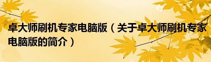 本文關于卓大師刷機專家電腦版的簡介就講解完畢,希望對大家有所幫助。