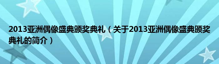 本文關于2013亞洲偶像盛典頒獎典禮的簡介就講解完畢,希望對大家有所幫助。