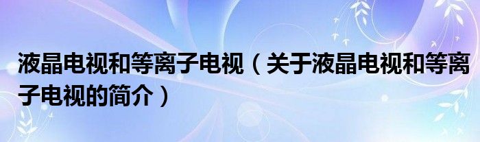 大家好,液晶電視和等離子電視,關于液晶電視和等離子電視的簡介很多人還不知道,現在讓我們一起來看看吧!