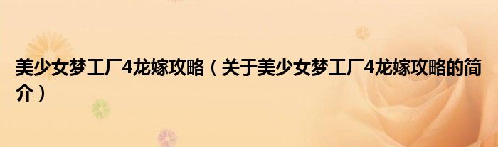 本文關于美少女夢工廠4龍嫁攻略的簡介就講解完畢,希望對大家有所幫助。
