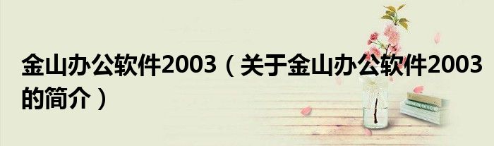 大家好,金山辦公軟件2003,關于金山辦公軟件2003的簡介很多人還不知道,現在讓我們一起來看看吧!