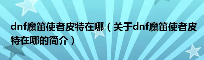 大家好,dnf魔笛使者皮特在哪,關于dnf魔笛使者皮特在哪的簡介很多人還不知道,現在讓我們一起來看看吧!
