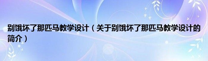 大家好,別餓壞了那匹馬教學(xué)設(shè)計(jì),關(guān)于別餓壞了那匹馬教學(xué)設(shè)計(jì)的簡介很多人還不知道,現(xiàn)在讓我們一起來看看吧!