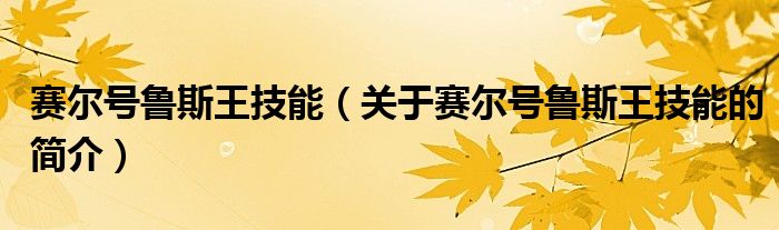 本文關(guān)于賽爾號(hào)魯斯王技能的簡(jiǎn)介就講解完畢,希望對(duì)大家有所幫助。