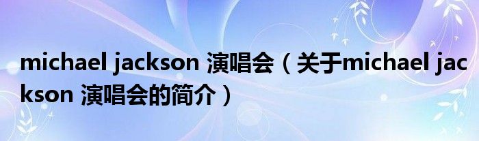 本文關于michael jackson 演唱會的簡介就講解完畢,希望對大家有所幫助。