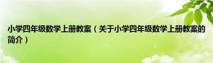 本文關于小學四年級數學上冊教案的簡介就講解完畢,希望對大家有所幫助。