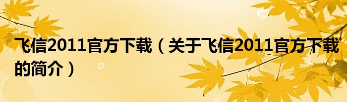 本文關于飛信2011官方下載的簡介就講解完畢,希望對大家有所幫助。