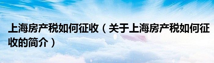 大家好,上海房產稅如何征收,關于上海房產稅如何征收的簡介很多人還不知道,現在讓我們一起來看看吧!