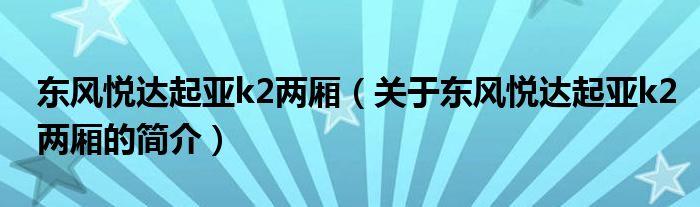 大家好,東風悅達起亞k2兩廂,關于東風悅達起亞k2兩廂的簡介很多人還不知道,現在讓我們一起來看看吧!