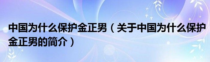 本文關于中國為什么保護金正男的簡介就講解完畢,希望對大家有所幫助。