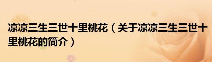本文關(guān)于涼涼三生三世十里桃花的簡(jiǎn)介就講解完畢,希望對(duì)大家有所幫助。