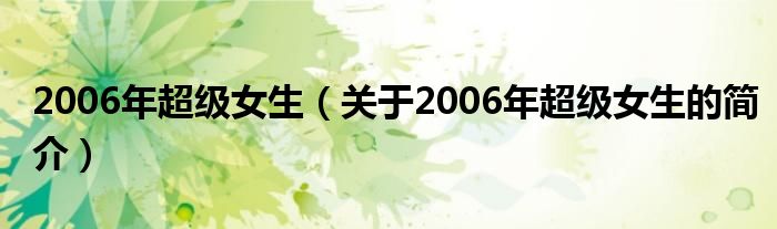 大家好,2006年超級女生,關(guān)于2006年超級女生的簡介很多人還不知道,現(xiàn)在讓我們一起來看看吧!