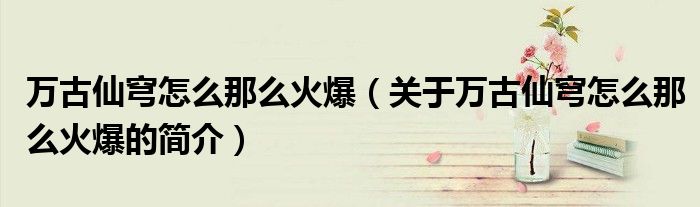 本文關于萬古仙穹怎么那么火爆的簡介就講解完畢,希望對大家有所幫助。