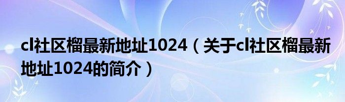 本文關于cl社區(qū)榴最新地址1024的簡介就講解完畢,希望對大家有所幫助。