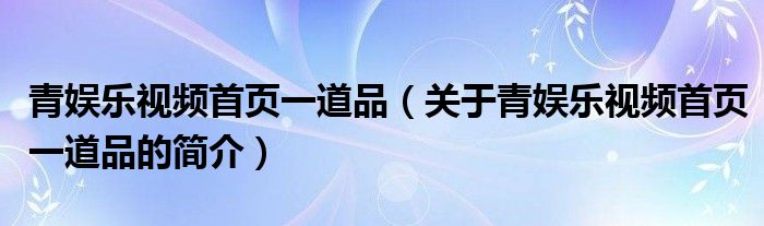 本文關于青娛樂視頻首頁一道品的簡介就講解完畢,希望對大家有所幫助。