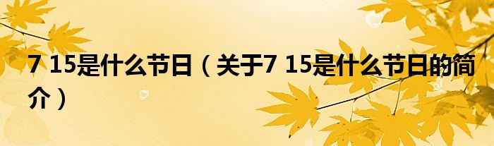 本文關(guān)于7 15是什么節(jié)日的簡(jiǎn)介就講解完畢,希望對(duì)大家有所幫助。