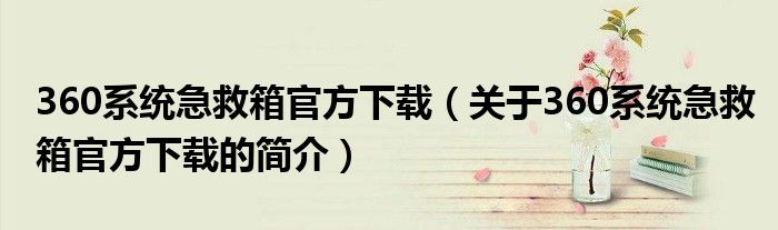 本文關于360系統急救箱官方下載的簡介就講解完畢,希望對大家有所幫助。