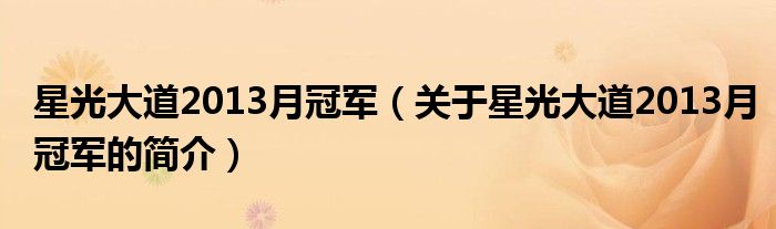 本文關于星光大道2013月冠軍的簡介就講解完畢,希望對大家有所幫助。