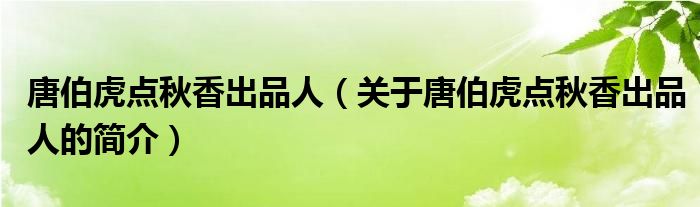 大家好,唐伯虎點秋香出品人,關于唐伯虎點秋香出品人的簡介很多人還不知道,現在讓我們一起來看看吧!