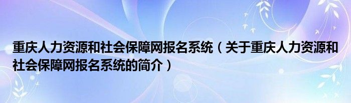 本文關于重慶人力資源和社會保障網報名系統的簡介就講解完畢,希望對大家有所幫助。