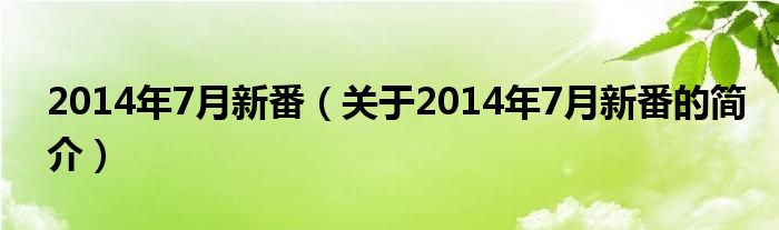 本文關(guān)于2014年7月新番的簡(jiǎn)介就講解完畢,希望對(duì)大家有所幫助。