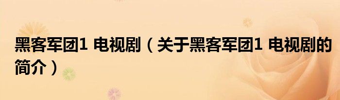 大家好,黑客軍團1 電視劇,關于黑客軍團1 電視劇的簡介很多人還不知道,現在讓我們一起來看看吧!