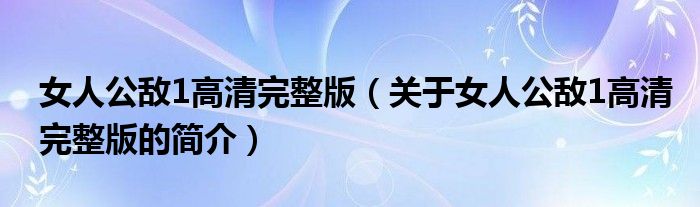 本文關于女人公敵1高清完整版的簡介就講解完畢,希望對大家有所幫助。