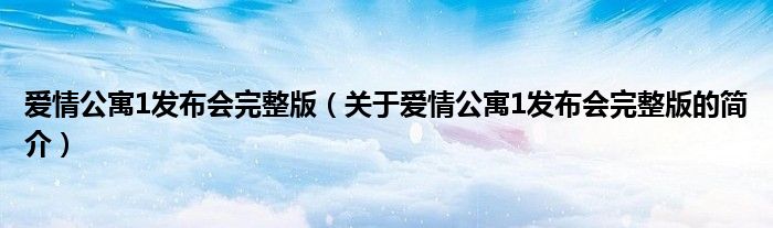 本文關于愛情公寓1發(fā)布會完整版的簡介就講解完畢,希望對大家有所幫助。