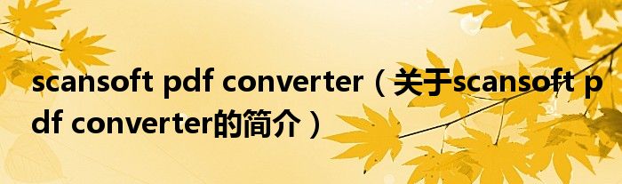 大家好,scansoft pdf converter,關于scansoft pdf converter的簡介很多人還不知道,現在讓我們一起來看看吧!