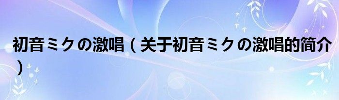 本文關(guān)于初音ミクの激唱的簡介就講解完畢,希望對大家有所幫助。