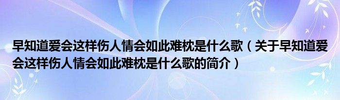 本文關于早知道愛會這樣傷人情會如此難枕是什么歌的簡介就講解完畢,希望對大家有所幫助。