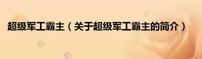 大家好,超級軍工霸主,關于超級軍工霸主的簡介很多人還不知道,現在讓我們一起來看看吧!