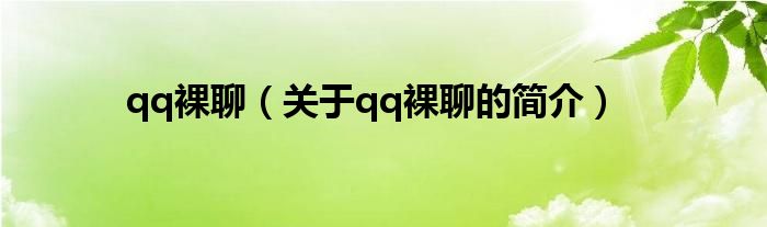 本文關于qq裸聊的簡介就講解完畢,希望對大家有所幫助。