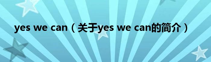 大家好,yes we can,關于yes we can的簡介很多人還不知道,現在讓我們一起來看看吧!