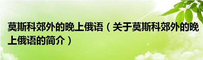本文關(guān)于莫斯科郊外的晚上俄語的簡介就講解完畢,希望對大家有所幫助。