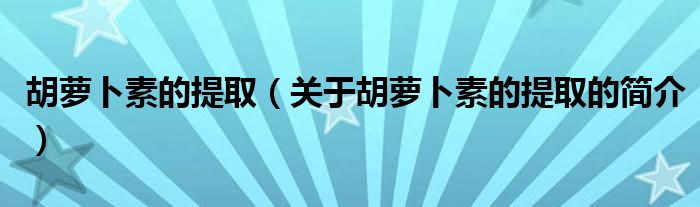 本文關于胡蘿卜素的提取的簡介就講解完畢,希望對大家有所幫助。