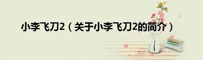 大家好,小李飛刀2,關于小李飛刀2的簡介很多人還不知道,現在讓我們一起來看看吧!
