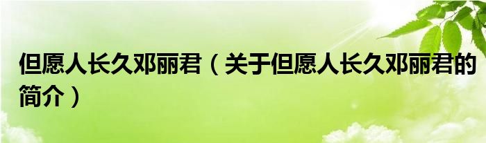 本文關(guān)于但愿人長久鄧麗君的簡介就講解完畢,希望對大家有所幫助。