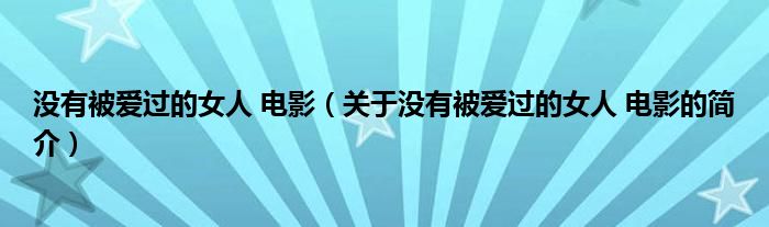 本文關于沒有被愛過的女人 電影的簡介就講解完畢,希望對大家有所幫助。