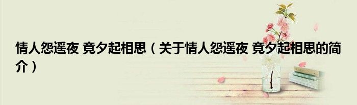 本文關(guān)于情人怨遙夜 竟夕起相思的簡(jiǎn)介就講解完畢,希望對(duì)大家有所幫助。