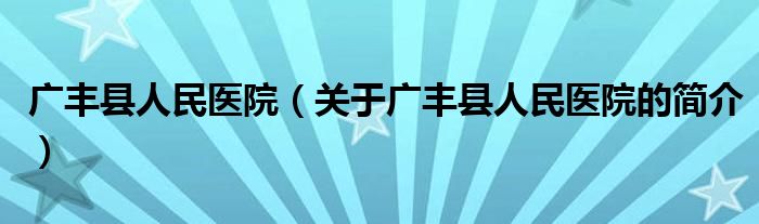 本文關于廣豐縣人民醫院的簡介就講解完畢,希望對大家有所幫助。