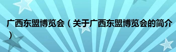 本文關于廣西東盟博覽會的簡介就講解完畢,希望對大家有所幫助。
